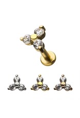 Bijou pour cartilage 18ga en Stainless en forme de Trinity inter vissé. Stainless Steel vendu dans le 6mm ou le 8mm. Rose Gold vendu dans le 6mm. Idéal pour Hélix, Conch, Tragus et Lobe